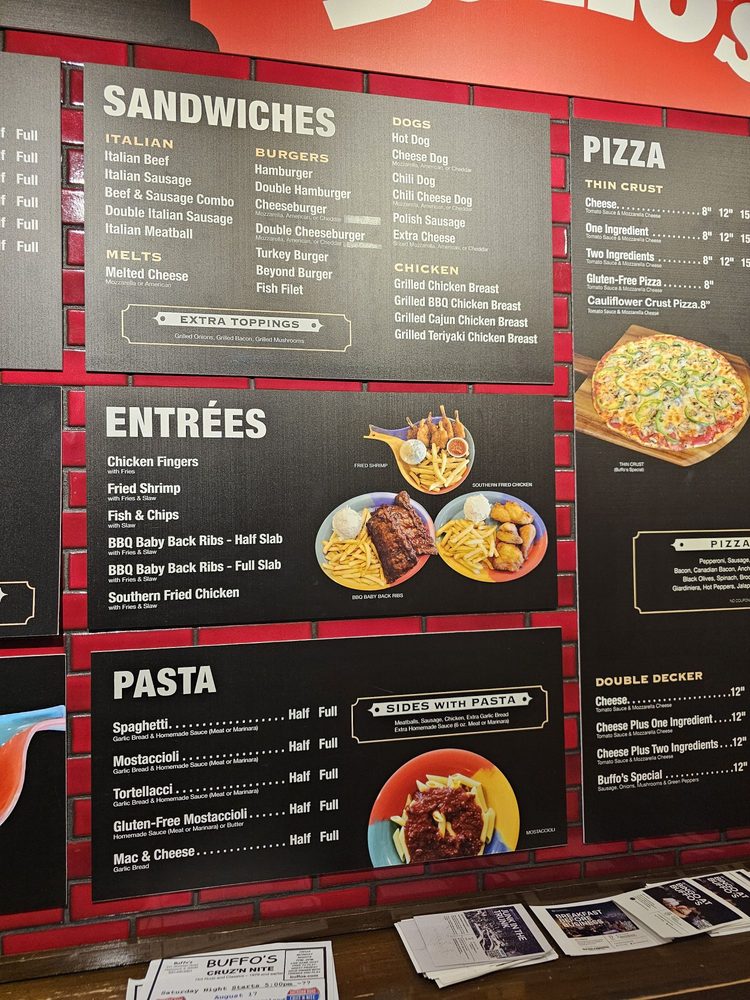 Buffo's in Highwood, IL offers a historic dining experience specializing in double-decker pizzas with stuffed crusts. The family-friendly atmosphere, where you order at the counter but receive table service, makes it a budget-friendly choice. Customers rave about their insane amount of cheese on pizzas and highlight their delicious hot sauces that pair perfectly with wings. The owner is beloved for his genuine love of the restaurant and outstanding service. The menu boasts a variety of options from pepperoni pizza to chicken sandwiches and pasta. Outdoor seating, trivia nights, and a welcoming staff add to the charm of Buffo's. Whether you're a regular or a new visitor, Buffo's is considered by many as a staple in the area, offering mouthwatering dishes in a comfortable setting.